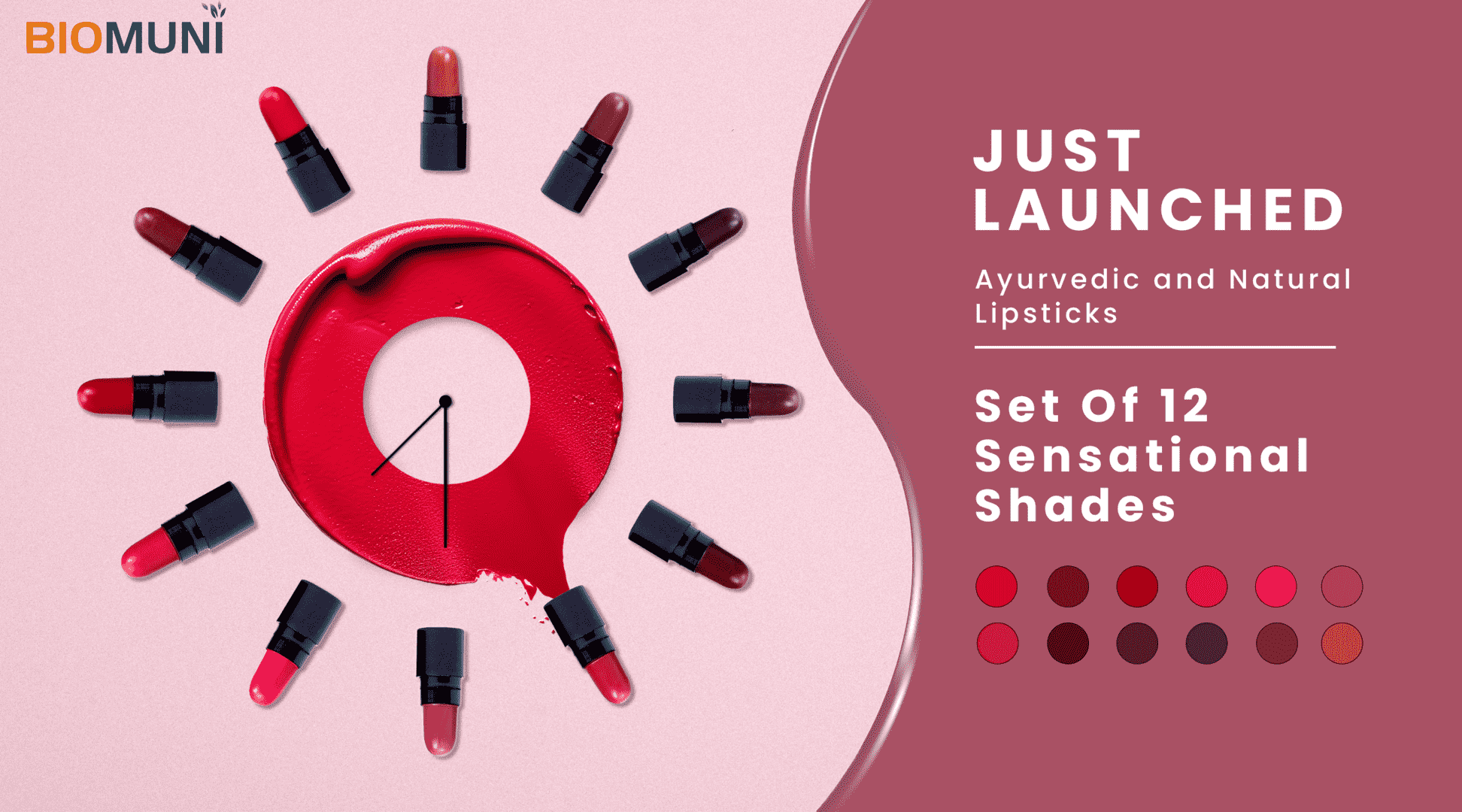 About the Product : Say hello to BIOMUNI Ayurvedic & Natural Creamy Matte Lipsticks - a set of 12 lip hydrating & moisturizing minis that will not only make you look stunning but also feel naturally nourished. BIOMUNI Miracle Creamy Matte Mini Lipsticks are infused with goodness of Ayurvedic ingredients including Jojoba and Rosemary Oil, Castor Oil and Vitamin E to smoothen, hydrate and nourish your lips with 12 amazing shades you will fall in love with! Be it office, casual wear, get togethers, party, or festivals - our amazing range of glamorous shades in Reds, Pinks, Browns and Nudes have got you covered. Carefully packed 12 minis, in an attractive box, ideal for Gifting! Bid farewell to worries with no silicones, parabens, petrochemicals, or synthetic film formers. Enjoy the pure goodness of natural ingredients. Enjoy the pure goodness of natural ingredients. Get ready to make a statement with lips that are not only beautiful but also cared for. Our BIOMUNI Ayurvedic & Natural Creamy Matte Lipsticks are here to elevate your lip game like never before. Hurry, embrace the magic of Ayurveda on your lips!